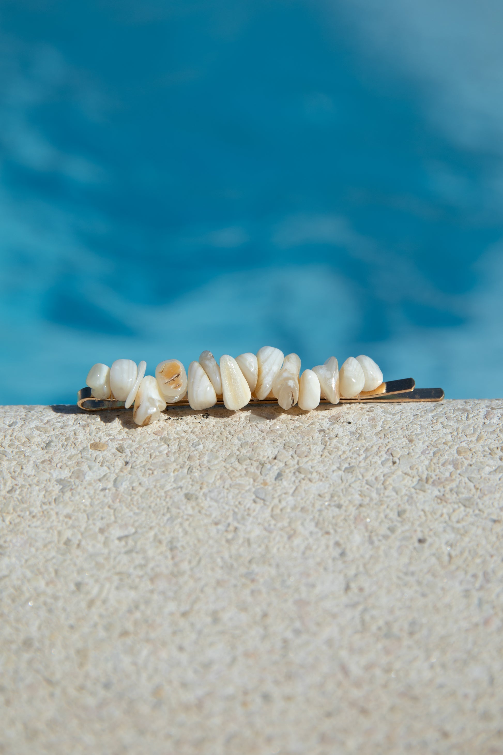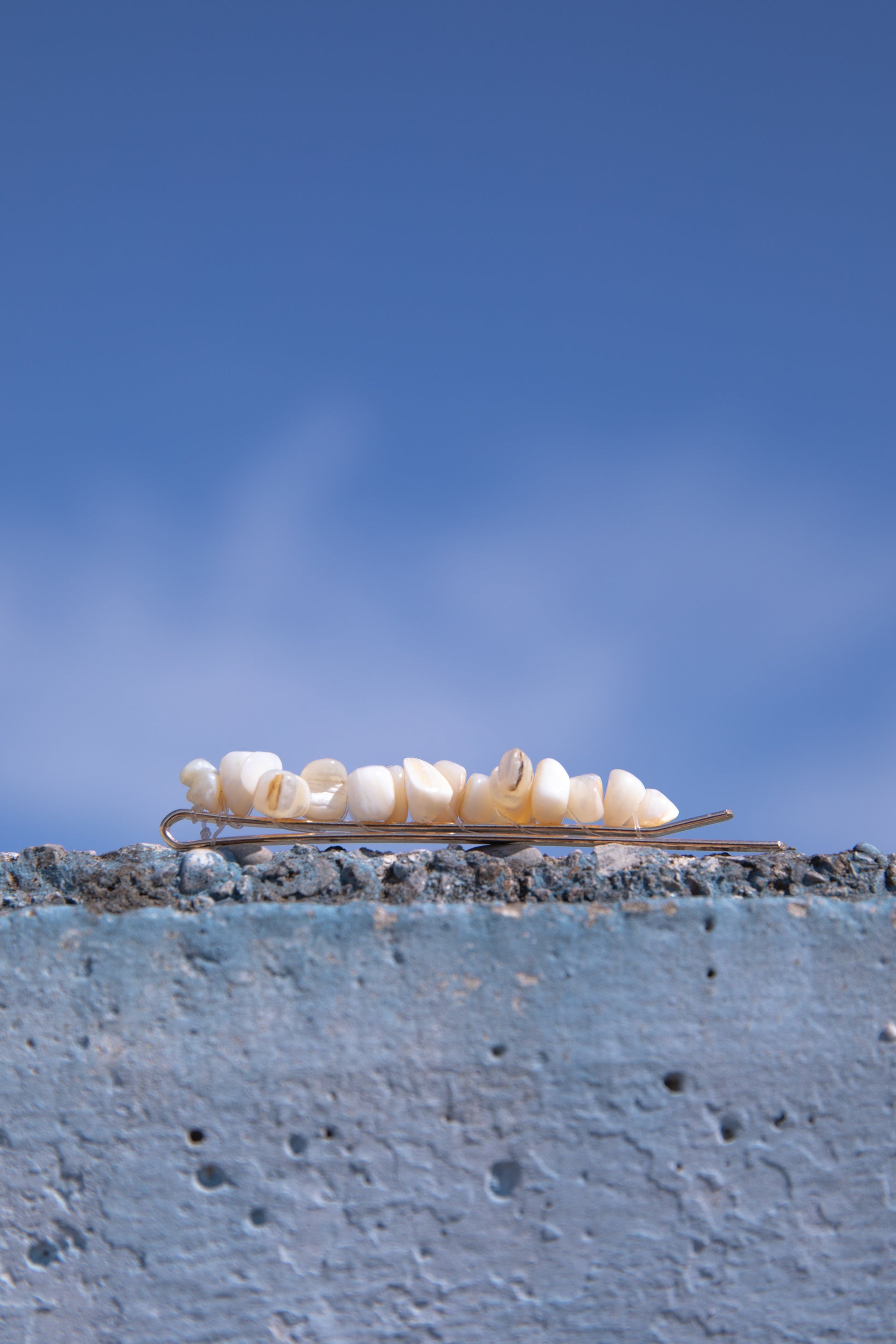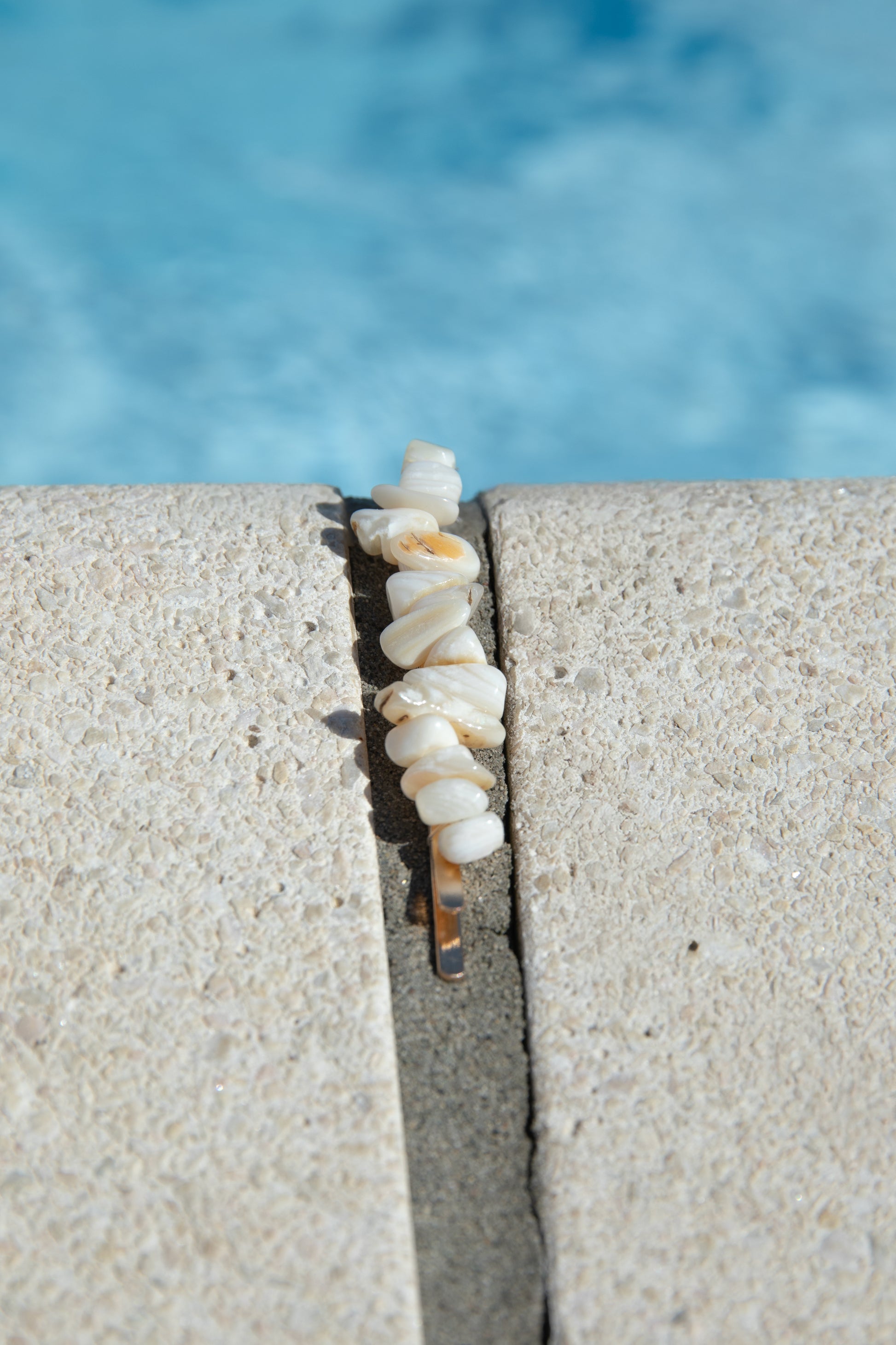 Una molletta decorata con conchiglie naturali, dal carattere fresco e dal fascino marino, ideale per look estivi e boho-chic.