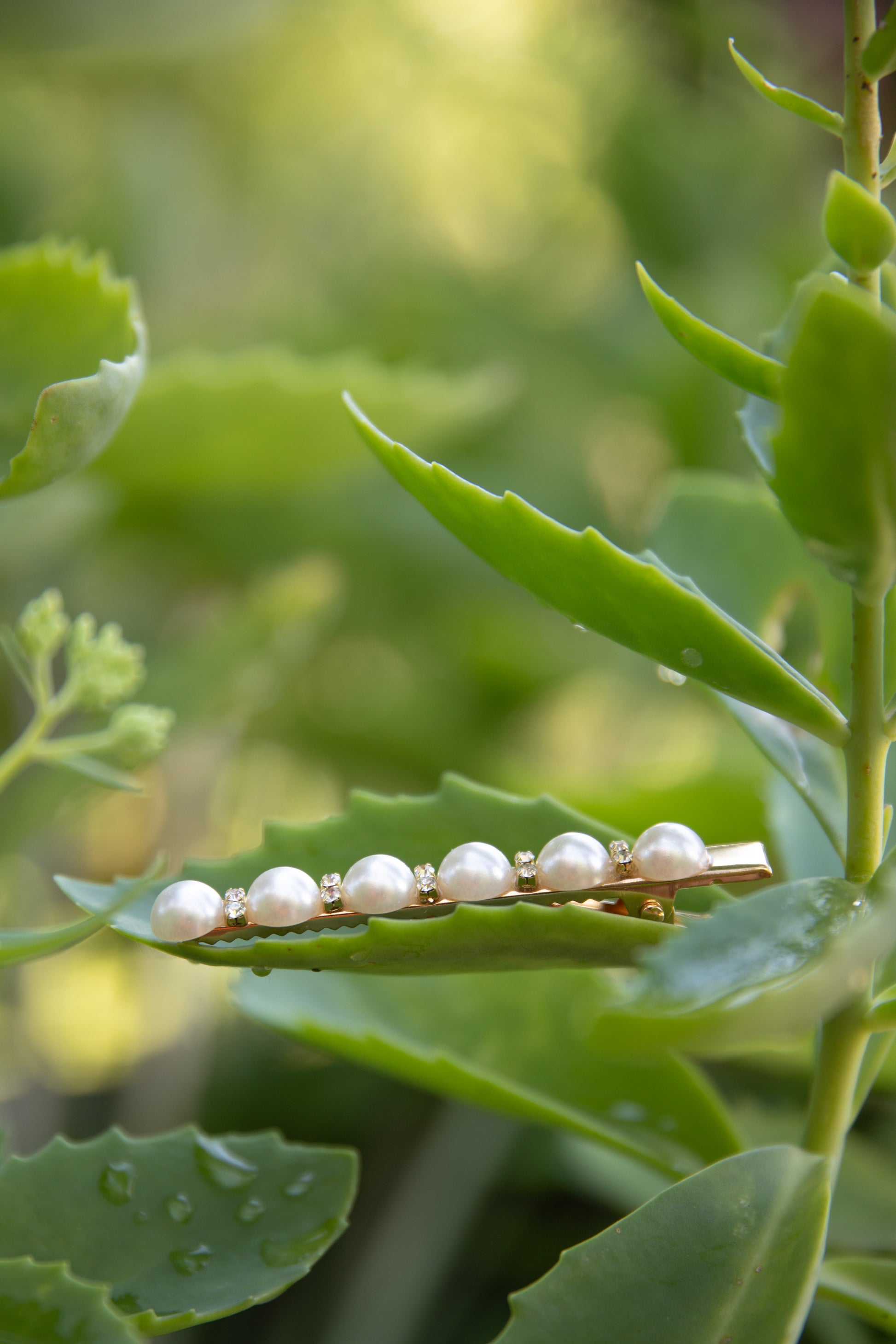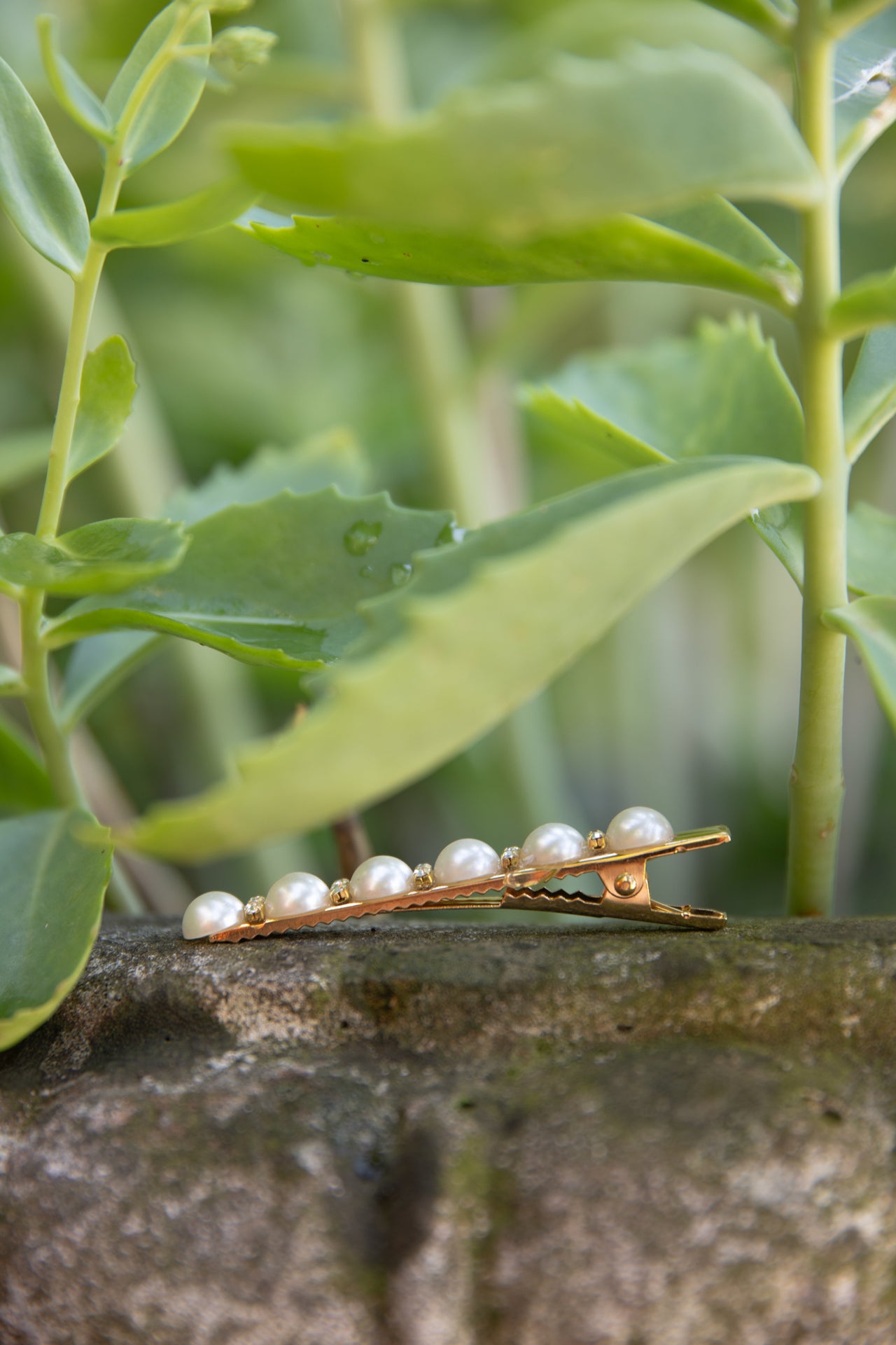 Una molletta impreziosita da perle e inserti dorati, classica e intramontabile, pensata per chi ama uno stile elegante e senza tempo.