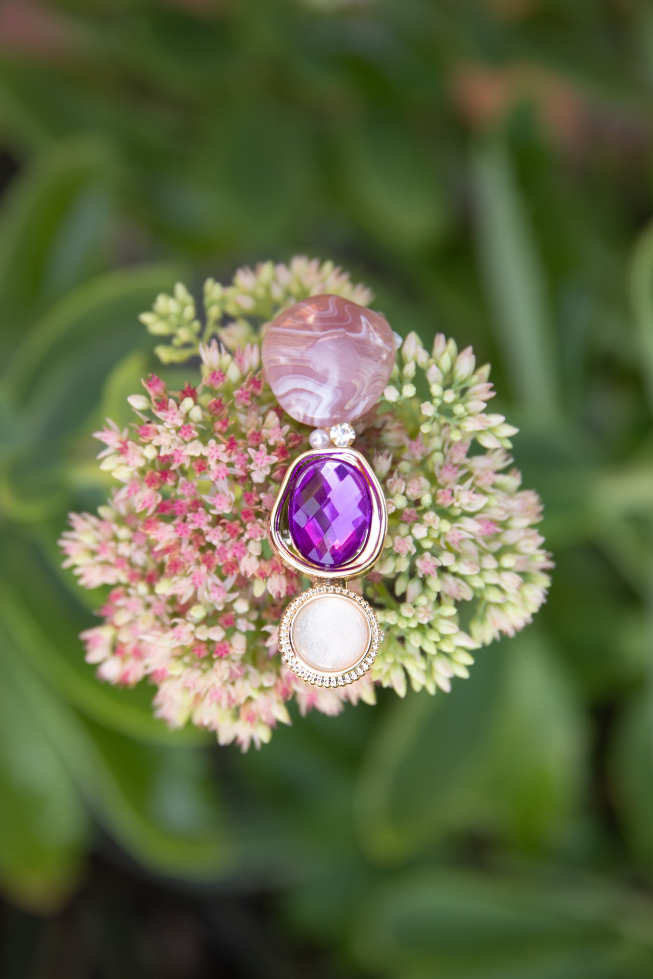 Una molletta con pietre colorate e dettagli luminosi, perfetta per dare un tocco sofisticato al look.