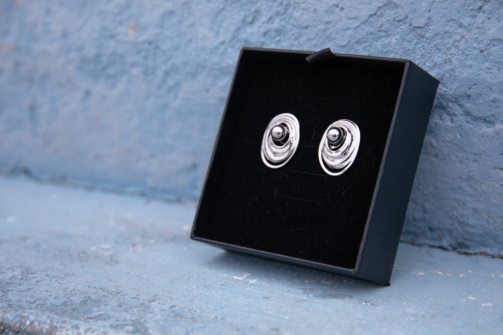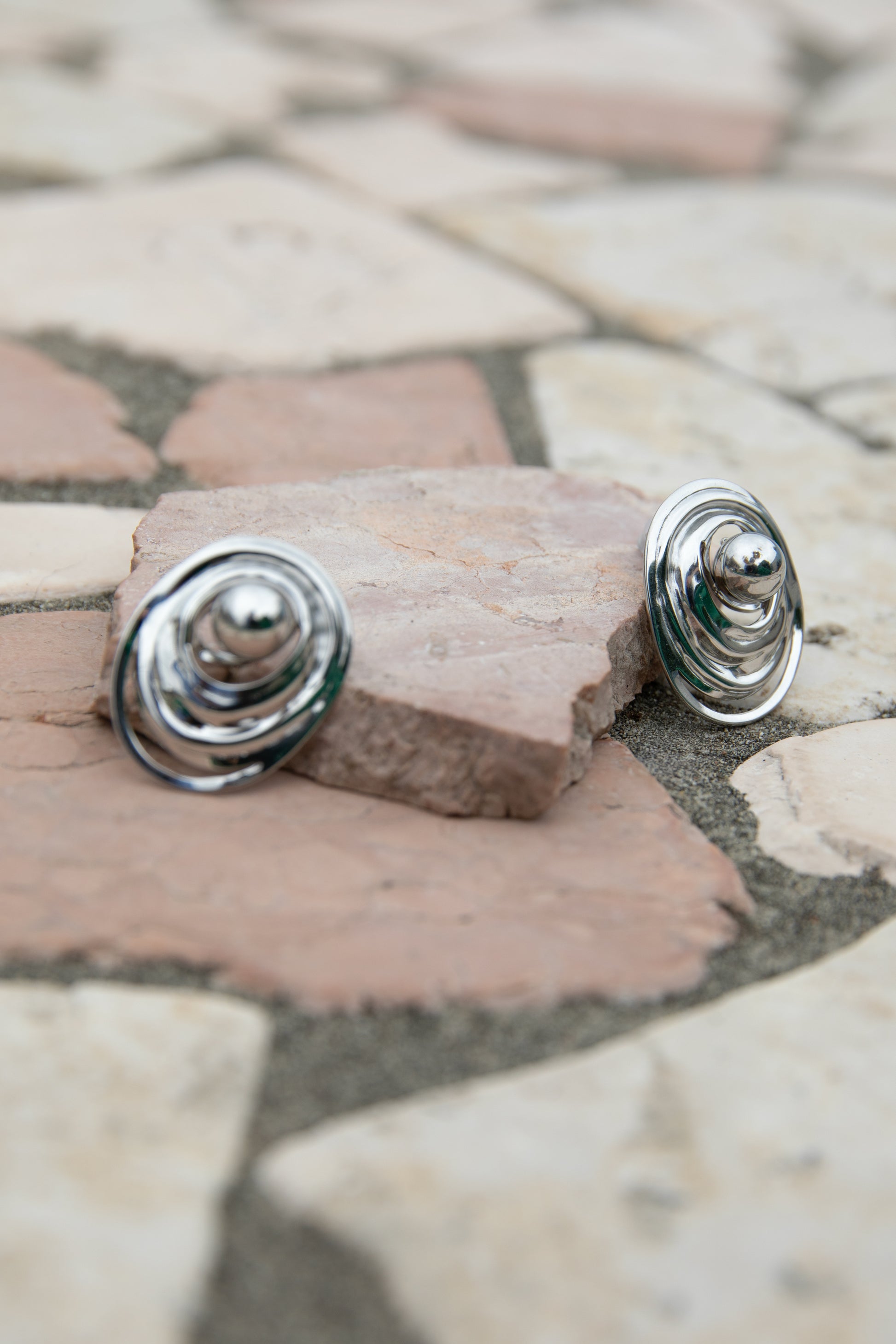 Questi orecchini tondi in acciaio presentano una pallina centrale che richiama l'immagine di un vortice, combinando forma e movimento in un design moderno ed elegante. La scelta dell’acciaio assicura resistenza e una finitura luminosa, perfetta per chi cerca un accessorio raffinato dal carattere deciso. Ideali per completare con stile sia look formali che informali.