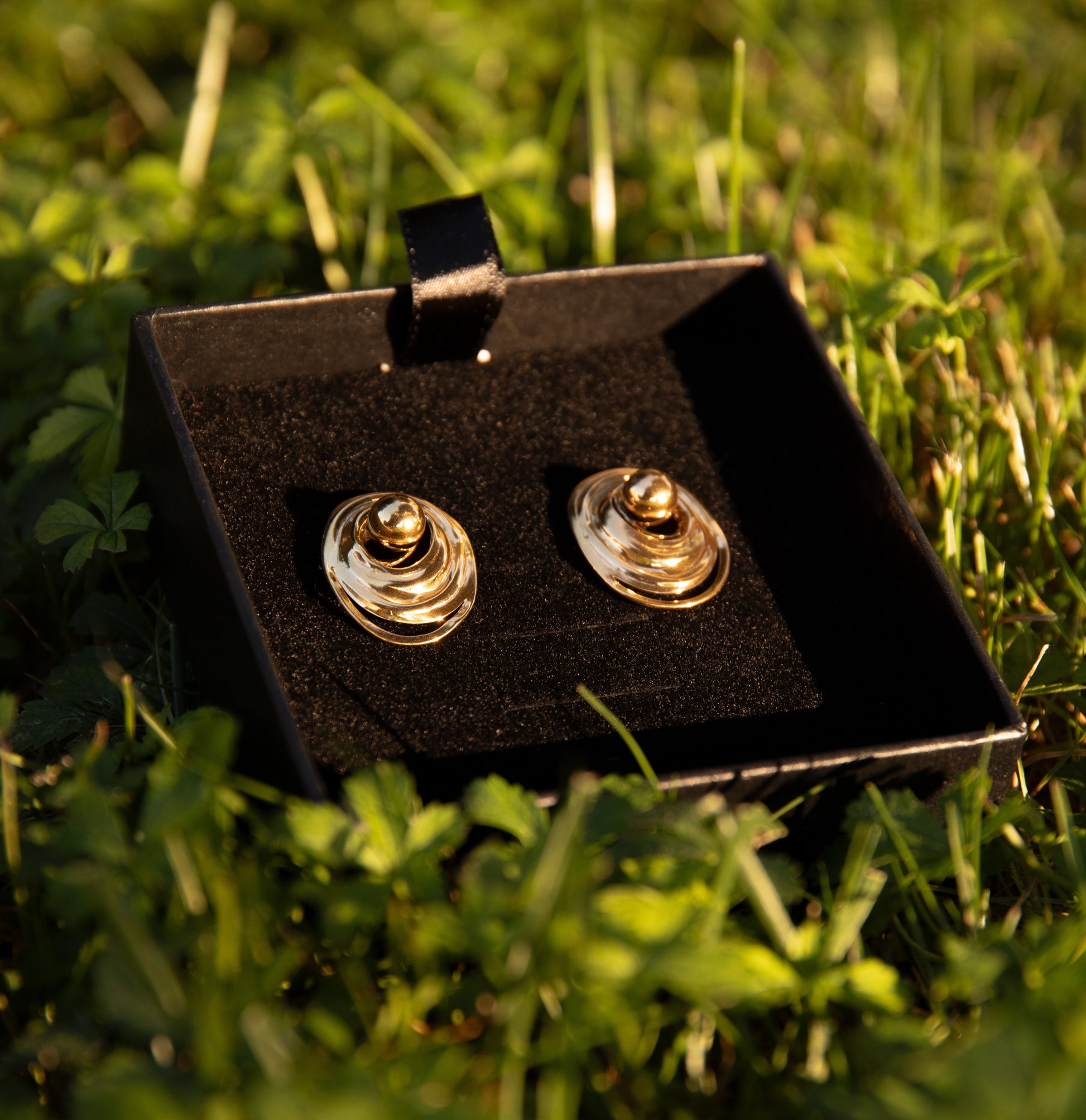 Questi eleganti orecchini a vortice combinano la lucentezza dell'oro e dell'argento in acciaio, con un design rotondo che avvolge delicatamente una pallina centrale. Perfetti per aggiungere un tocco sofisticato e moderno a ogni outfit, sono resistenti e di lunga durata, ideali per chi cerca stile e qualità in un unico accessorio.
