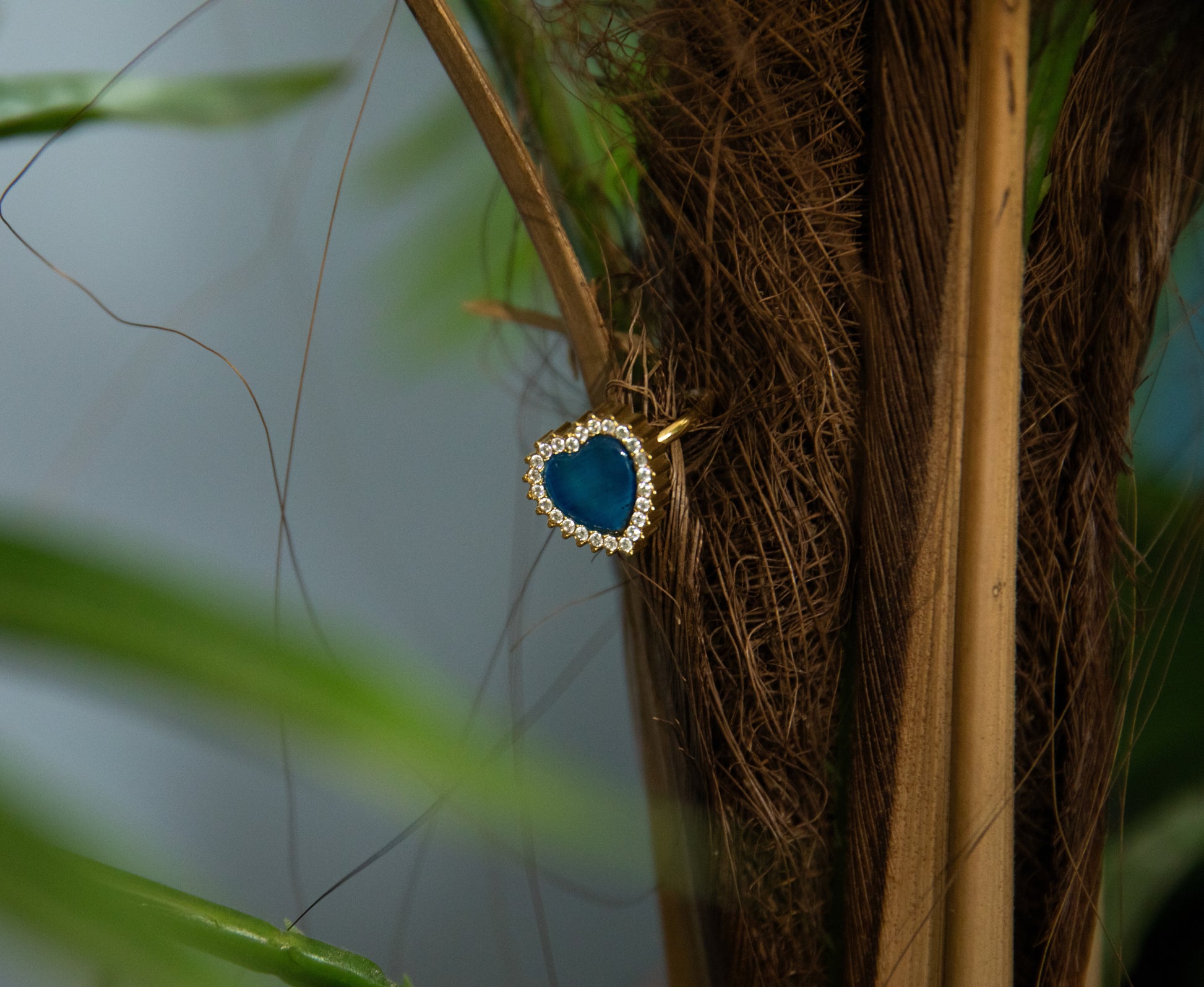 Un set raffinato che racchiude tutta la bellezza dell’amore in ogni dettaglio. Questa splendida parure in acciaio dorato è composta da collana, orecchini e anello regolabile, tutti impreziositi da un cuore centrale di un intenso blu cangiante, incorniciato da una delicata lavorazione luminosa.